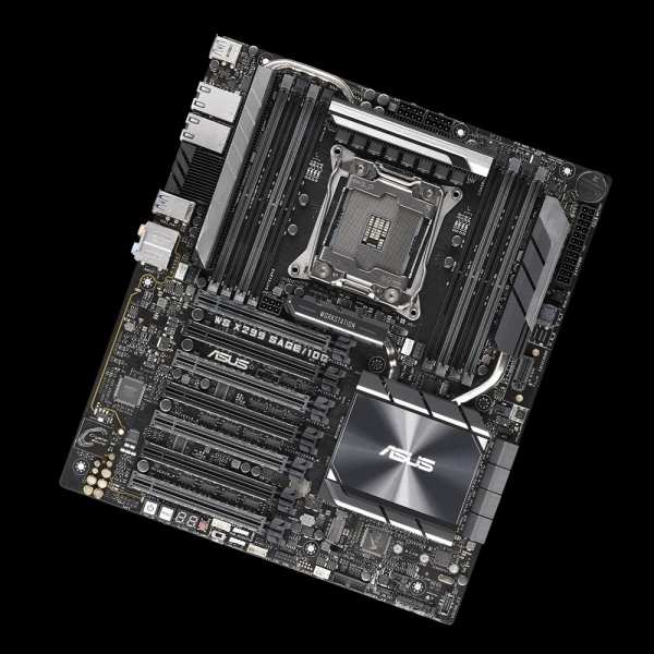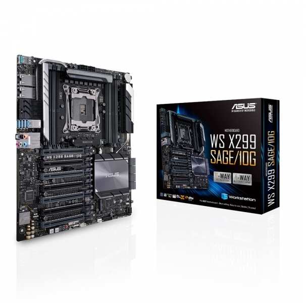 ASUS WS X299 SAGE/10G. Processor manufacturer Intel, Processor socket LGA 2066 (Socket R4), Lithography 14 nm. Supported memory types DDR4-SDRAM, Supported memory clock speeds 2133,2400,2666 MHz, Maximum internal memory 512 GB. HDD interface Serial ATA III. Parallel processing technology support 4-Way CrossFireX,4-Way SLI. Ethernet interface type 10 Gigabit Ethernet, LAN controller Intel® X550-AT2