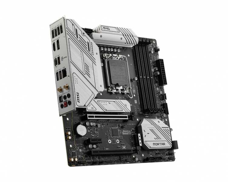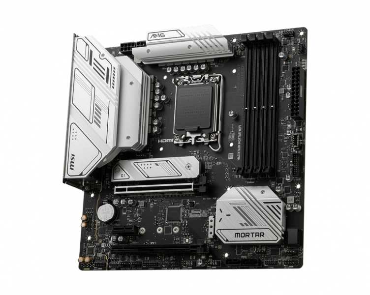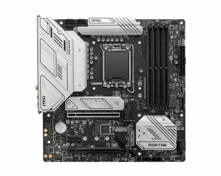 MSI MAG B760M MORTAR WIFI. Processor manufacturer Intel, Processor socket LGA 1700, Compatible processor series Intel® Celeron®, Intel® Pentium® Gold. Supported memory types DDR5-SDRAM, Maximum internal memory 128 GB, Memory slots type DIMM. Supported storage drive interfaces M.2, SATA III, RAID levels 0, 1, 5, 10. Ethernet interface type 2.5 Gigabit Ethernet, Top Wi-Fi standard Wi-Fi 6 (802.11ax), Wi-Fi standards 802.11a, 802.11b, 802.11g, Wi-Fi 4 (802.11n), Wi-Fi 5 (802.11ac), Wi-Fi 6E (802.11ax). Component for PC, Motherboard form factor micro ATX, Motherboard chipset family Intel