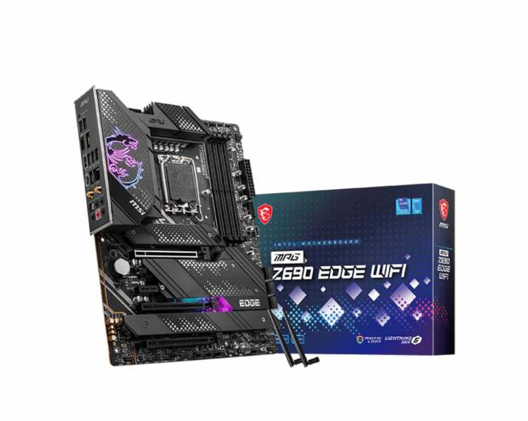 MSI MPG Z690 EDGE WIFI. Processor manufacturer Intel, Processor socket LGA 1700, Compatible processor series Intel® Celeron®, Intel® Core i3, Intel® Core i5, Intel® Core i7, Intel® Core i9, Intel® Pentium®. Supported memory types DDR5-SDRAM, Maximum internal memory 128 GB, Memory slots type DIMM. Supported storage drive interfaces M.2, SATA III, RAID levels 0, 1, 5, 10. Parallel processing technology support Crossfire. Ethernet interface type 2.5 Gigabit Ethernet, LAN controller Intel I225-V, Top Wi-Fi standard Wi-Fi 6E (802.11ax)