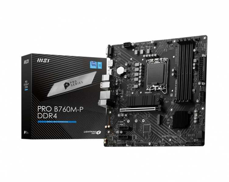 MSI PRO B760M-P DDR4 - Intel - LGA 1700 - Intel® Celeron® - Intel® Pentium® Gold - LGA 1700 - DDR4-SDRAM - 128 GB - 4x DDR4 - 1x HDMI - 1x DisplayPort - 4x SATA - Wi-Fi - mATX