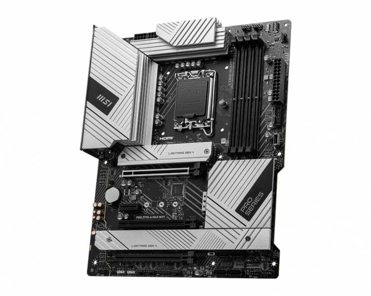 MSI PRO Z790-A MAX WIFI. Processor manufacturer Intel, Processor socket LGA 1700, Compatible processor series Intel® Celeron®, Intel® Pentium®, Intel® Pentium® Gold. Supported memory types DDR5-SDRAM, Maximum internal memory 128 GB, Memory channels Dual-channel. Supported storage drive interfaces M.2, PCI Express, Supported storage drive types HDD & SSD, RAID levels 0, 1, 5, 10. Ethernet interface type 2.5 Gigabit Ethernet, Top Wi-Fi standard Wi-Fi 6 (802.11ax), Wi-Fi standards 802.11a, 802.11g, Wi-Fi 4 (802.11n), Wi-Fi 5 (802.11ac), Wi-Fi 6 (802.11ax). Component for PC, Motherboard form factor ATX, Motherboard chipset family Intel