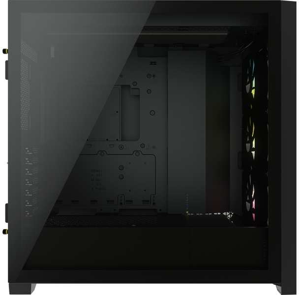 Corsair iCUE 5000X RGB. Form factor Midi Tower, Type PC, Material Plastic, Steel, Tempered glass. Power supply location Bottom, Supported power supply form factors ATX. Front fans installed 3x 120 mm, Front fans diameters supported 120,140 mm, Rear fans diameters supported 120 mm. Supported HDD sizes 2.5,3.5. Width 245 mm, Depth 520 mm, Height 520 mm