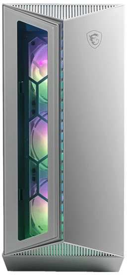 MSI MPG GUNGNIR 110R WHITE Mid Tower Gaming Computer Case 'White, 4x 120mm ARGB Fan, 1 to 6 ARGB Control board, USB Type-C, Tempered Glass, Center, ATX, mATX, mini-ITX'. Form factor Midi Tower, Type PC, Product colour White. Power supply location Bottom, Supported power supply form factors ATX. Front fans installed 3x 120 mm, Front fans diameters supported 120,140 mm, Rear fans installed 1x 120 mm. Supported HDD sizes 2.5. Width 215 mm, Depth 430 mm, Height 450 mm