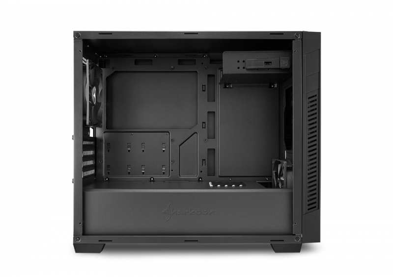 Sharkoon S1000. Type PC, Material Metal, Supported motherboard form factors Micro-ATX,Mini-ITX. Power supply location Bottom. Front fans installed 1x 120 mm, Front fans diameters supported 120 mm, Side fans diameters supported 120 mm. Supported HDD sizes 2.5,3.5,5.25. Width 195 mm, Depth 453 mm, Height 402 mm