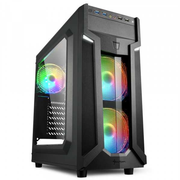 Sharkoon VG6-W RGB. Form factor Midi ATX Tower, Type PC, Supported motherboard form factors ATX,Micro-ATX,Mini-ATX. Front fans installed 2x 120 mm, Rear fans installed 1x 120 mm. Width 200 mm, Depth 461 mm, Height 430 mm