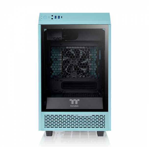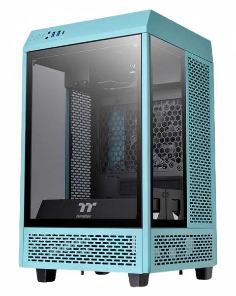 Thermaltake The Tower 100. Form factor Mini Tower, Type PC, Product colour Turquoise. Rear fans installed 1x 120 mm, Rear fans diameters supported 120,140 mm, Top fans installed 1x 120 mm. Supported HDD sizes 2.5,3.5. Width 266 mm, Depth 266 mm, Height 462.8 mm