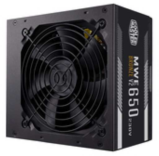 Cooler Master MWE 650 Bronze 230V V2. Total power 650 W, AC input voltage 220 - 240 V, AC input frequency 50 - 60 Hz. Motherboard power connector 24-pin ATX, Cabling type Non-Modular. Purpose PC, Power supply unit (PSU) form factor ATX, 80 PLUS certification 80 PLUS Bronze. Product colour Black, Cooling type Active, Fan diameter 12 cm. Width 150 mm, Depth 140 mm, Height 86 mm