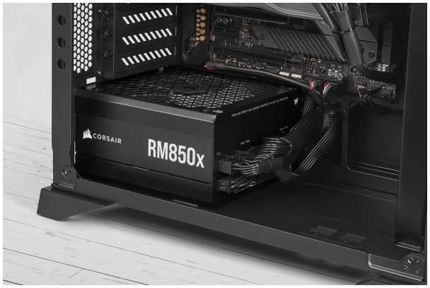 Corsair RM850x. Total power 850 W, AC input voltage 100 - 240 V, AC input frequency 47 - 63 Hz. Motherboard power connector 24-pin ATX, Motherboard power cable length 61 cm, SATA power cable length 750,850 mm. Purpose PC, Power supply unit (PSU) form factor ATX, 80 PLUS certification 80 PLUS Gold. Product colour Black, Cooling type Active, Fan diameter 13.5 cm. Width 150 mm, Depth 160 mm, Height 86 mm