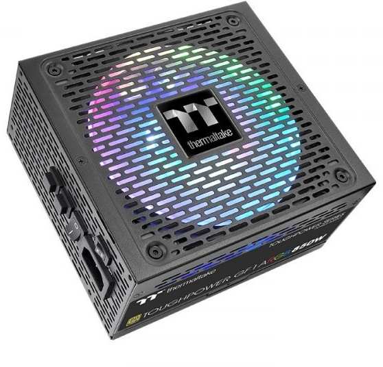 Thermaltake PS-TPD-0850F3FAGE-1. Total power 850 W, AC input voltage 100 - 240 V, Peak power 1020 W. Motherboard power connector 24-pin ATX, Motherboard power cable length 60 cm, SATA power cable length 150,500 mm. Purpose PC, Power supply unit (PSU) form factor ATX, 80 PLUS certification 80 PLUS Gold. Product colour Black, Cooling type Active, Number of fans 1 fan(s). Width 150 mm, Depth 160 mm, Height 86 mm