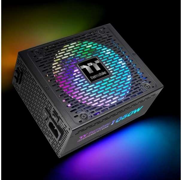 Thermaltake Toughpower PF1. Total power 1050 W, AC input voltage 100 - 240 V, Peak power 1260 W. Motherboard power connector 24-pin ATX, Motherboard power cable length 60 cm, SATA power cable length 500,650,800,950 mm. Purpose PC, 80 PLUS certification 80 PLUS Platinum, Noise level 22 dB. Product colour Black, Cooling type Active, Fan diameter 14 cm. Width 350 mm, Depth 230 mm, Height 160 mm