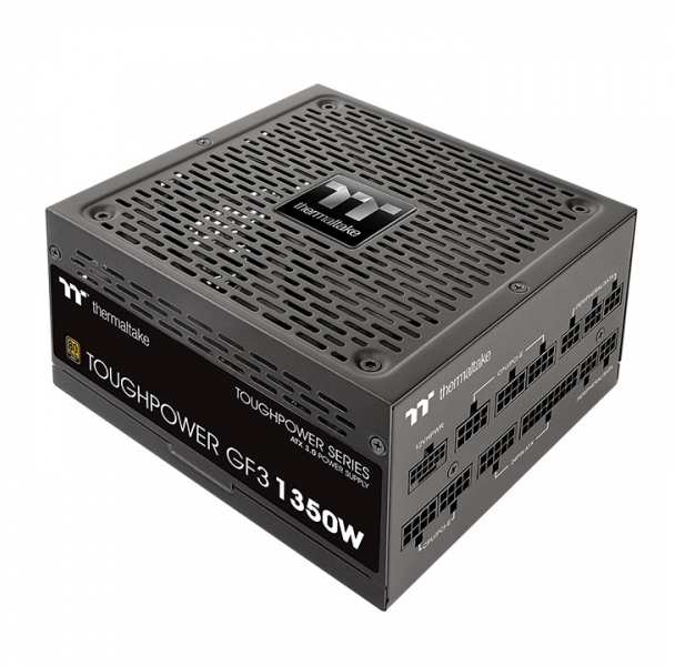 Thermaltake Toughpower GF3. Total power 1350 W, AC input voltage 100 - 240 V, AC input frequency 50/60 Hz. Motherboard power connector 24-pin ATX, Motherboard power cable length 60 cm, SATA power cable length 500,650,800 mm. Purpose PC, 80 PLUS certification 80 PLUS Gold, Bearing technology HDB. Product colour Black, Fan diameter 14 cm, Number of fans 1 fan(s). Width 150 mm, Depth 160 mm, Height 86 mm