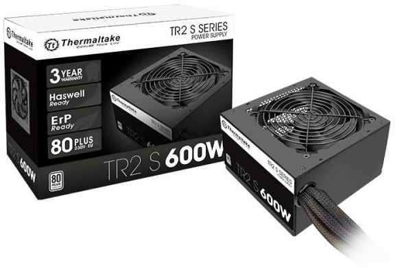 Thermaltake TRS-600AH2NK. Total power 600 W, AC input voltage 230 V, AC input frequency 50 - 60 Hz. Fan diameter 12 cm, Number of fans 1 fan(s), Fan location Top. Motherboard power connector 20+4 pin ATX, Cabling type Modular. Purpose PC, Power supply unit (PSU) form factor ATX, Mean time between failures (MTBF) 100000 h. Product colour Black