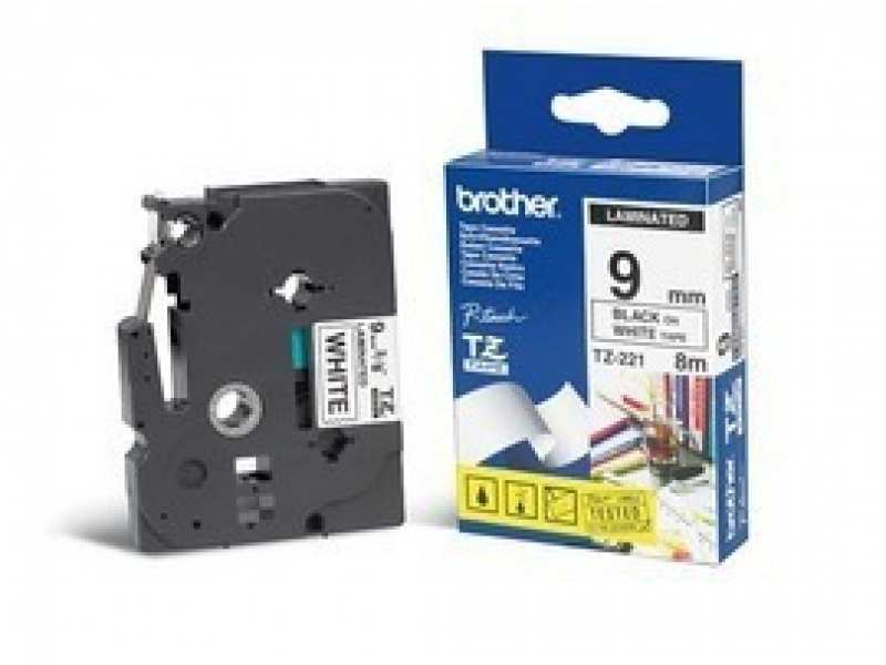 Brother TZe-221. Label colour Black on white, Tape type TZe, Print technology Inkjet. Package type Presentation box. Tape width 9 mm, Tape length 8 m, Quantity per pack 1 pc(s)
