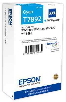 Epson Ink Cartridge XXL Cyan. Printing colours Cyan, Brand compatibility Epson, Compatibility WorkForce Pro WF-5110/WF-5190/WF-5620/WF-5690. Quantity per pack 1 pc(s), Package type Box