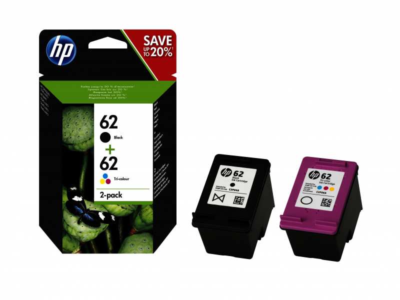 HP 62. Type Original, Ink type Pigment-based ink, Printing colours Black,Cyan,Magenta,Yellow. Package width 117 mm, Package depth 38 mm, Package height 170 mm