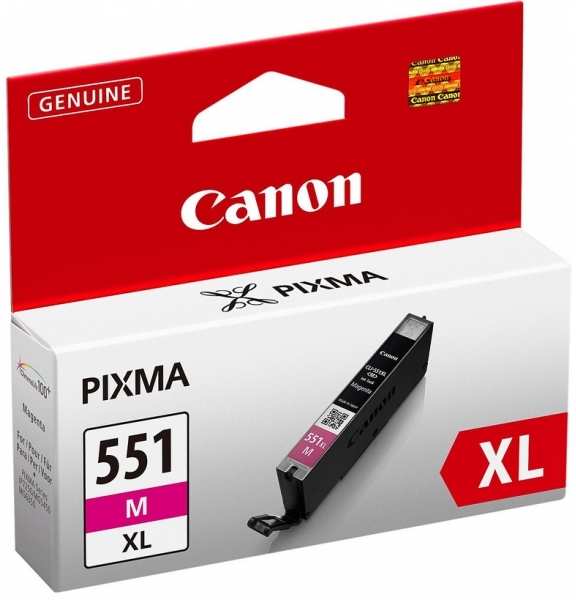 Canon CLI-551XL M. Type Original, Ink type Dye-based ink, Printing colours Photo magenta. Package type Blister. Page yield footnote A4, ISO/IEC 24734
