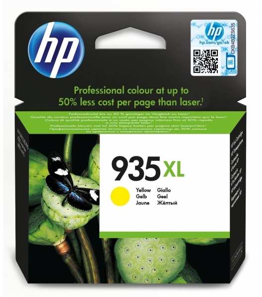 HP 935XL. Type Original, Ink type Pigment-based ink, Printing colours Yellow. Width 106 mm, Depth 23 mm, Height 113.5 mm