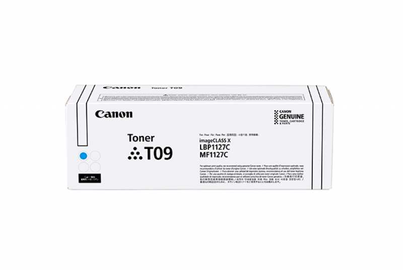 Features Type Original Printing colours Cyan Print technology Laser printing Brand compatibility Canon Compatibility i-SENSYS X C1127P/C1127i/C1127iF Supply type Single pack Quantity per pack 1 pc(s) Colour toner page yield 5900 pages OEM code T09 Weight & dimensions Package type Box