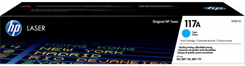 HP 117A Cyan Original Laser Toner Cartridge. Colour toner page yield 700 pages, Printing colours Cyan, Quantity per pack 1 pc(s)