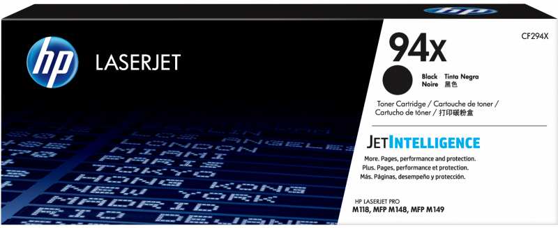 HP 94X High Yield Black Original LaserJet Toner Cartridge. Black toner page yield 2800 pages, Printing colours Black, Quantity per pack 1 pc(s)