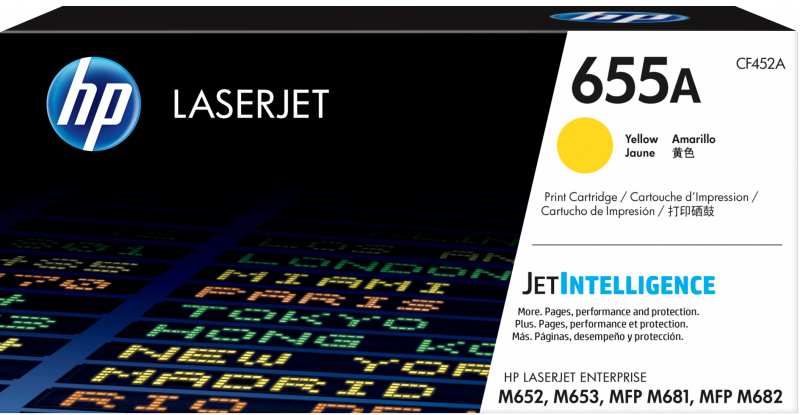 Features Type Original Printing colours Yellow Brand compatibility HP Compatibility HP 655 toner cartridges work with HP LaserJet Enterprise M652, M653, M681, M682 Quantity per pack 1 pc(s) Cartridge capacity Standard Yield Colour toner page yield 10500 pages OEM code CF452A Country of origin Japan HP segment Business, Enterprise Weight & dimensions Width 378 mm Depth 163 mm Height 192 mm Weight 1.03 kg Package width 378 mm Package depth 163 mm Package height 192 mm Package weight 1.47 kg Operational conditions Operating temperature (T-T) 15 - 30 °C Storage temperature (T-T) -20 - 40 °C Storage relative humidity (H-H) 10 - 90 % Other features Print technology Laser printing Technical details Box contents Toner cartridge Recycling guide