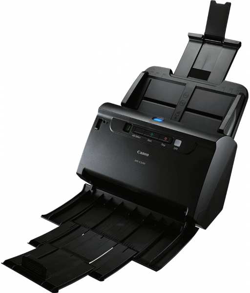 Canon imageFORMULA DR-C230. Maximum scan size 216 x 3000 mm, Optical scanning resolution 600 x 600 DPI, Output colour depth 24 bit. Scanner type Sheet-fed scanner, Product colour Black. Sensor type CMOS CIS, Daily duty cycle (max) 3500 pages, Light source RGB LED. Standard input capacity 60 sheets. Maximum ISO A-series paper size A4, Scanning media types supported Business Card, Plastic Card, Media thickness (min) 0.06 mm