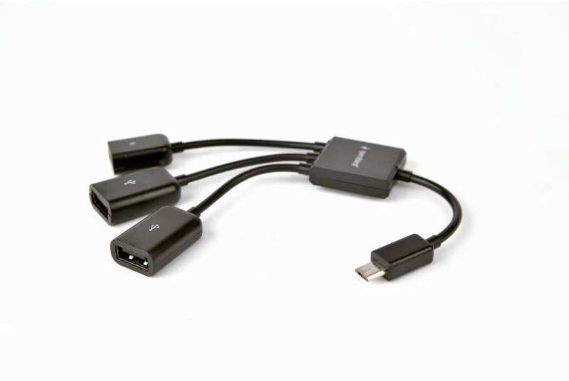 KenmerkenErmöglicht die Verbindung von Standard USB-Geräten mit MicroUSB OTG Smartphones und Tablet-PCsDer Micro USB Anschluss kann ebenso zum Aufladen des verbundenen OTG Gerätes verwendet werdenIntegriertes MicroUSB-Kabel (männlich)Kein zusätzliches Netzteil erforderlichSpecificatiesMaterial plasticSupports Samsung Galaxy S2, Galaxy Note, Galaxy S3/S4/S5, Galaxy Tab3 8.0 Sony Xperia NX-02D, Xperia Acro HDIS12S Toshiba REGZA Phone-T01D, Sony S-series Tablet etc.Built-in micro USB cable 13 cmDimensions 55 x 25 x 12 mmNet weight 13 gSystemeisenSmartphone of tablet with OTG Micro-USB portFor connected devices that require more power, an extra micro USB 5V power supply is required