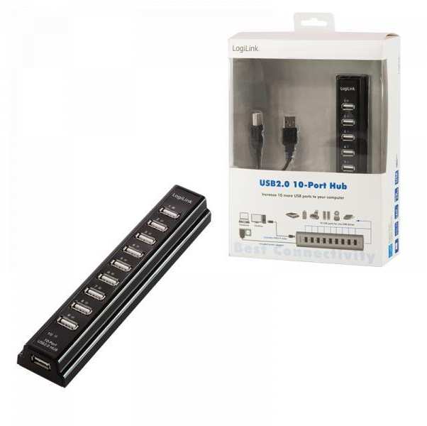 Der schnelle Hub von LogiLink unterstützt den modernen USB 2.0-Standard mit bis zu 480 MBit/s und erweitert Ihren Anschluss um weitere 10 Ports. Sie können aber natürlich auch alle Geräte älterer USB Generationen anschließen. Dieser praktische Hub im edelen Design zieht alle Blicke auf sich und ist dabei sehr leistungsstark. Ein 220 Volt Netzteil mit 3,5 Ampere ist im Lieferumfang enthalten.