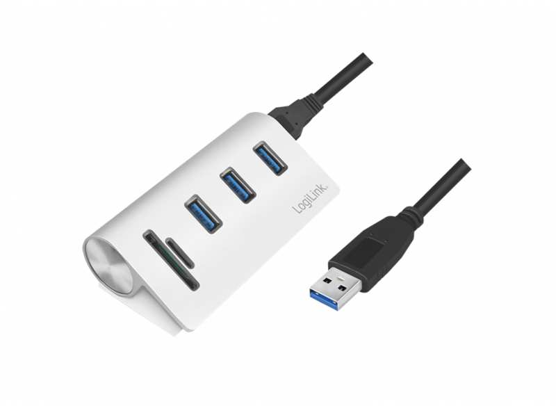 LogiLink CR0045 - USB 3.2 Gen 1 (3.1 Gen 1) Type-A - USB 3.2 Gen 1 (3.1 Gen 1) Type-A - MicroSD (TransFlash),SD - 5000 Mbit/s - Silver - Aluminium - 3x USB A 3.0 - SD - microSD - 5 Gbps - 90 x 47 x 27 mm - 70 g