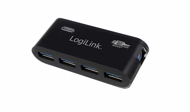 LogiLink USB 3.0 4x - USB 3.2 Gen 1 (3.1 Gen 1) Type-A - 5000 Mbit/s - Black - CE - RoHS - 5 V - 107 mm - Hub - 4-Port - Black