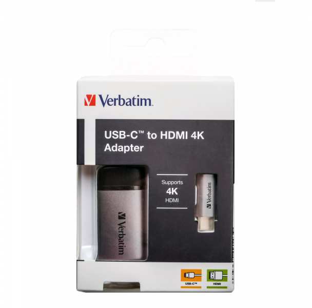 Verbatim 49143. Cable length 0.1 m, Connector 1 USB Type-C, Connector 2 HDMI. Weight 25 g, Width 24 mm, Depth 55 mm. Quantity per pack 1 pc(s)