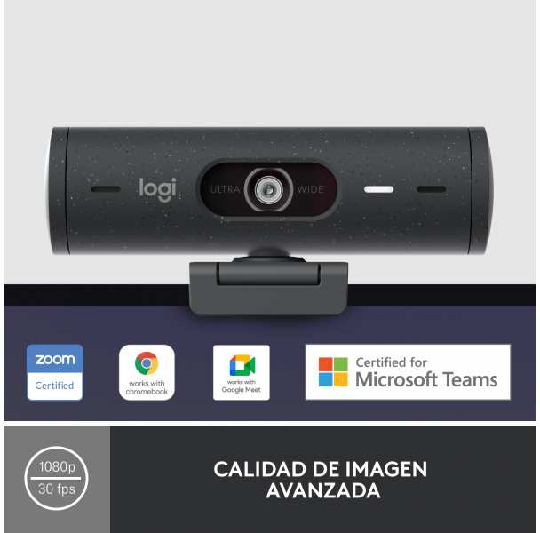 Logitech Brio 500. Megapixel (approx.) 4 MP, Maximum video resolution 1920 x 1080 pixels, Maximum frame rate 60 fps. Interface USB-C, Product colour Graphite, Mounting type Clip. Windows operating systems supported Windows 10, Windows 11, Windows 8, Windows 8.1, Mac operating systems supported Mac OS X 10.10 Yosemite, Mac OS X 10.11 El Capitan, Mac OS X 10.12 Sierra, Mac OS X 10.13 High..., Other operating systems supported Chrome. Sustainability certificates Forest Stewardship Council (FSC). Width 110 mm, Depth 31.5 mm, Height 31.5 mm