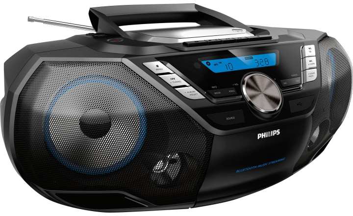 Philips CD Soundmachine AZB798T/12. Tuner type Analog & digital, Supported radio bands DAB, DAB+, FM. Optical drive type Player, Disc types supported CD, CD-R, CD-RW, Playback modes Fast Backward, Fast forward, Next, Previous, Program, Repeat, Shuffle. RMS rated power 12 W. Audio formats supported MP3, WMA. Display type LCD, Backlight colour Blue