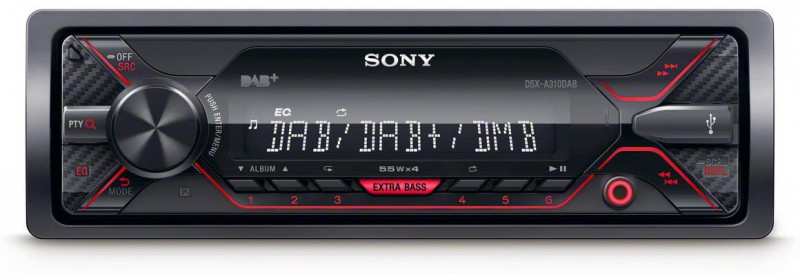 Sony DSX-A310DAB. Product colour Black,Red, Output power 220 W, Audio output channels 4.0 channels. Audio formats supported AAC,FLAC,MP3,WMA. Display type LCD, Illumination colour White. USB connector type USB Type-A, USB port position Front. Supported radio bands DAB,DAB+,FM,LW,MW, FM band range 87.5 - 108 MHz