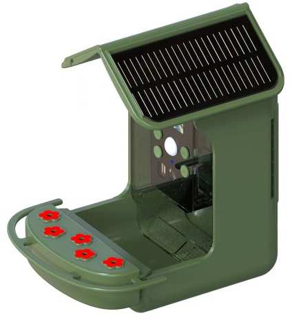 The BirdyCam is a bird feeder with a camera with automatic motion detection. Equipped with a highly sensitive PIR sensor, it detects every movement within three meters and automatically takes photos or videos in the immediate vicinity.