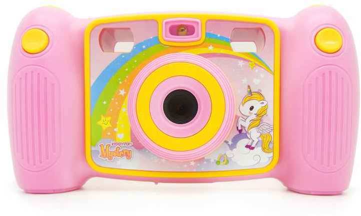br>KiddyPix Galaxy's front lens delivers beautiful pictures with a resolution of up to 5MP (by interpolation) and colourful videos with sound and a resolution of up to Full HD (1920x1080 @25fps by interpolation). The back lens is perfect for first selfies. Thanks to the 2 LCD display, little photographers can immediately check their takes and decorate their photos with a wide range of funny and pretty frames.