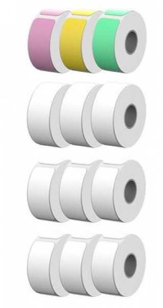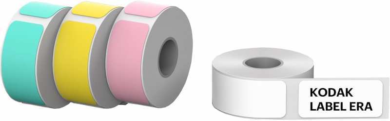 Label tape for Kodak Era label printers This product is used in the KODAK Label Maker M50 (Label ERA). Each pack contains 12 rolls of label stickers (White 9 rolls, Pink/Green/Yellow 1 roll each). One roll contains approximately 180 labels, the size of one label is 1.3 x 3 cm.