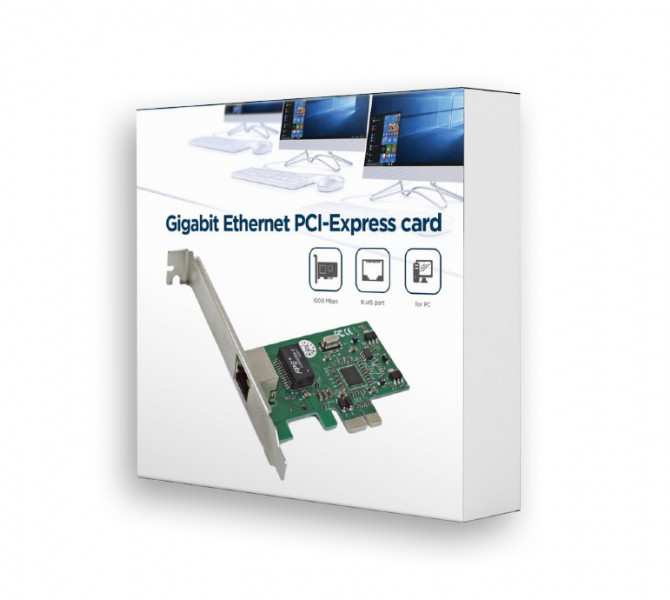Kenmerken 1 Gigabps PCI-Express v.1.0a LAN-Karte Ein STP RJ45 Anschluss, 1.000 Mbps, 100 Mbps oder 10 Mbps möglich Automatische Wahl der Geschwindigkeit, Pair swap/polarity/skew correction, Crossover-Erkennung Auto-Setups der IRQ und I/O Addresse Unterstützt Microsoft Windows Me, NT, 2000, XP, Vista, MAC OS, Unix/Linux, NovellSpecificatiesSupports PCI-Express bus v.1.0aCompliant with IEEE802.3ab 1000BASE-T Gigabit Ethernet standard, IEEE802.3u Fast Ethernet standard, IEEE 802.3Supports IEEE 802.1Q VLAN taggingSupports IEEE802.1P Layer 2 Priority EncodingSupports Full Duplex flow control (IEEE 802.3x), power saving, Wake-on-LAN, remote wake-up, PCI Message Signaled Interrupt (MSI)Chipset RTL8111CDimensions 120 x 80 x 20 mm, x1 slotNet weight 32 gSystemeisen1 freier PCI-Express x1 SlotWindows 98, ME, NT, 2000, XP, Vista, 7, 8 (32 und 64 Bit), MAC OS v.10.4 oder neuer, Unix, LinuxInhoudAddon cardLow profile bracket