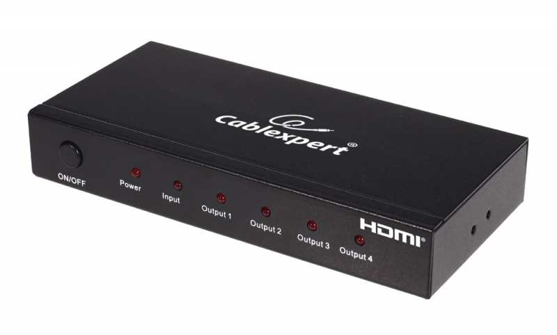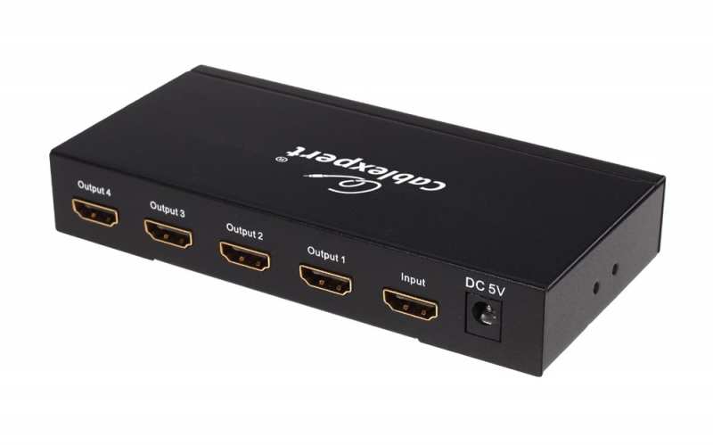 Gembird DSP-4PH4-001. Video port type HDMI, Video out 4x HDMI, Video in 1x HDMI. Maximum resolution 1920 x 1080 pixels, Product colour Black, Housing material Steel. Input voltage 5 V. Dimensions (WxDxH) 146 x 73 x 24 mm, Weight 280 g