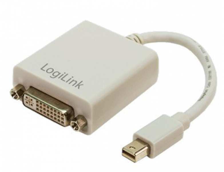 LogiLink Mini DisplayPort / DVI Adapter. Connector 1 Mini DisplayPort M, Connector 2 DVI-I FM, Connector gender Male connector / Female connector. Cable length 0.09 m, Product colour Grey