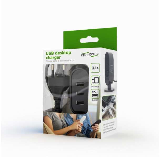 KenmerkenUSB-Tischladegerät mit 3 Anschlüssen, 15 WLanges Netzkabel und praktischer TischständerErmöglicht das gleichzeitige Laden von bis zu 3 Tablets, Telefonen und anderen mobilen GerätenÜberstrom- und KurzschlussschutzSpecificatiesInput voltage 100 V AC to 240 V AC, 50 Hz to 60 Hz Output 5 V DC, 3.1 A totallyUSB ports 3Cord 1.4 mDimensions 82 x 60 x 32 mmNet weight 140 g