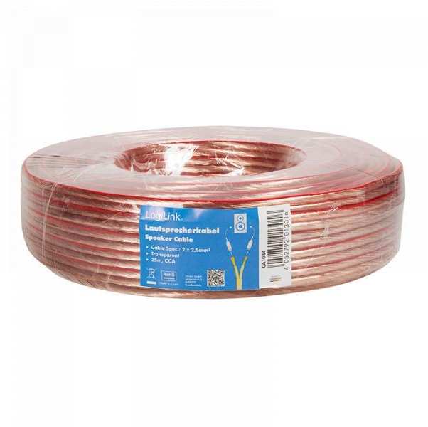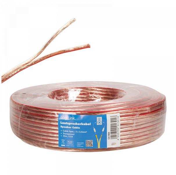 Die Lautsprecherkabel von LogiLink bestehen aus kupferkaschiertem Aluminium (CCA) und verfügen über eine transparente Ummantelung. Beide Innenleiter haben jeweils einen Durchmesser von 2,5 mm².