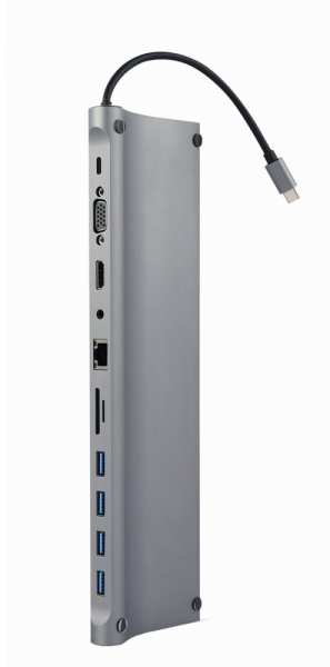 GEMBIRD A-CM-COMBO11-01 USB Type C 11in1 multi port adapter USB hub + HDMI + VGA + PD + card reader + LAN + 3.5 mm audio space pilkas