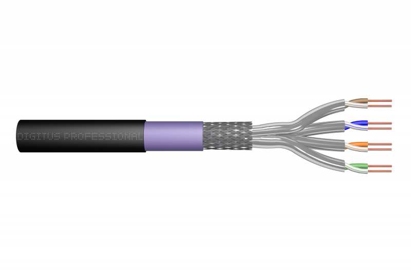 Digitus DK-1741-VH-1-OD. Cable length 100 m, Cable standard Cat7, Cable shielding SF/UTP (S-FTP), Cable colour Black