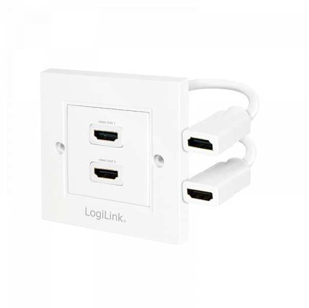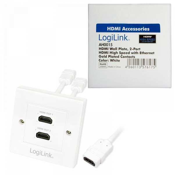 HDMI wall plate from LogiLink with HDMI socket (wall socket) to DVI Female (internal). The internal connection is via a short HDMI cable with HDMI connector. Supports standards to HDMI High Speed with Ethernet. Gold-plated contacts and shielded.