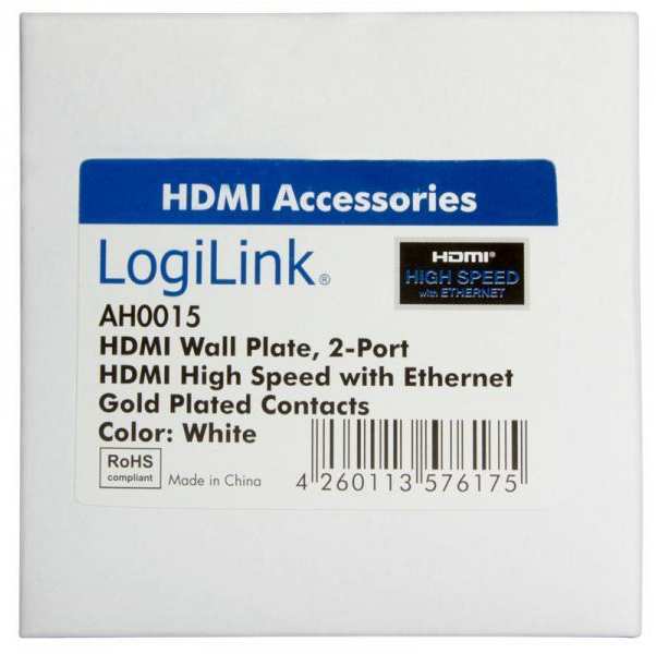 HDMI wall plate Connections 1x HDMI female Supports HDMI 1.4 High Speed with Ethernet Gold-plated contacts Shielded Color White