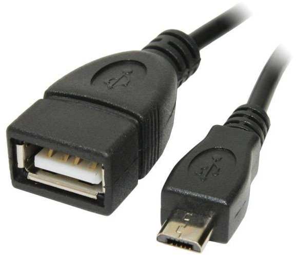 OTG Adapter for Smartphones Connection 1 USB micro B male Connection 2 USB A female Allows connection of keyboard, USB hub,USB flash drives, card readers, etc. Cable length total 14cm Color Black