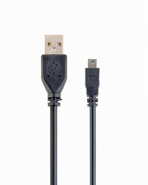 KenmerkenUSB 2.0 cable A plug/mini-USB 5PM 6ft cable30u' gold-plated contacts suitable for USB 2.0 high-speed data transferSpecificatiesUSB 2.0 and USB 1.1 compatibleMoulded connectorsProfessional seriesBlack colorBulk packingLength 1.8 m (6 ft)