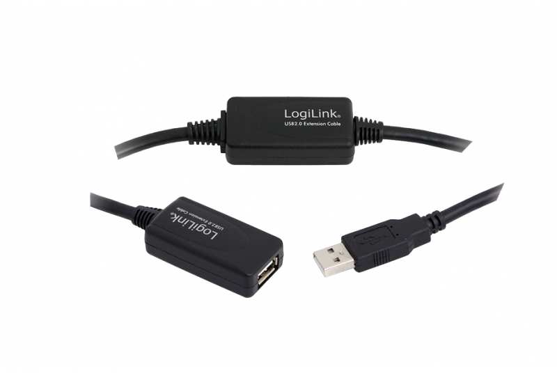 LogiLink 20M USB 2.0 - USB 2.0 M/F - 20 m - USB A - USB A - USB 2.0 - Male/Female - Black - Cable - Digital - 20 m - USB 2.0 - 4-pole