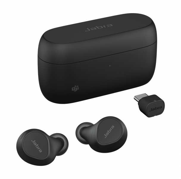 Performance Product type Headset Wearing style In-ear Recommended usage Calls/Music Headset type Binaural Product colour Black Operating keys Multi-key Volume control Touch Control unit type On-ear control unit Control type Touch Cable length 0.3 m Protection features Dust resistant, Waterproof International Protection (IP) code IP57 LED indicators Yes Over the Air Updates (OTA) Yes Hearing protection technologies Jabra PeakStop, Jabra Safetone G616 Music playback Yes HD voice Yes Auto-connect Yes Certification Cisco, MFi, Qi, Zoom, Amazon Chime, Amazon Alexa Ports & interfaces Connectivity technology True Wireless Stereo (TWS) Bluetooth Yes Bluetooth profiles HFP Bluetooth version 5.2 Frequency response (music mode) 20 - 20000 Hz Frequency response (talk mode) 80 - 8000 Hz Wireless range 20 m Microphone Microphone type Built-in Microphone frequency 80 - 8000 Hz Number of microphones 6 MEMS (Micro-Electro-Mechanical System) microphone Yes Microphone noise-canceling Yes Battery Battery operated Yes Battery type Built-in battery Battery technology Lithium-Ion (Li-Ion) Continuous audio playback time (charging case/ANC on) 33 h Continuous audio playback time (ANC on) 8 h Continuous audio playback time (ANC off) 10 h Rechargeable battery Yes Battery charge indicator Yes Battery recharge time 2 h Fast charging Yes Fast charging time 5 min Charging source USB Talk time (ANC off) 5 h Standby time 7008 h Wireless charging Yes Packaging content Charging case Yes Charging case type Wired & Wireless Charging case connector type USB Type-C Quick start guide Yes Receiver included Yes Wireless receiver interface USB Type-C Warranty card Yes Safety sheet Yes Accessories included in set 3 sizes silicone eartips Eartips material Silicone Extra earbuds Yes Quantity 1 Other features Bluetooth Low Energy (BLE) Yes Voice guidance Yes Voice guidance languages English, French, German, Japanese, Korean Applications supported Jabra Sound+, Jabra Direct, Jabra Xpress Auto power off Yes Equalizer Yes Battery level indicator Yes Voice control Yes Digital Signal Processing (DSP) Yes Call management Y Headphones Ear coupling Intraaural Intraaural headphones type Earbuds Driver unit 6 mm Noise canceling Yes Noise canceling type Active Weight & dimensions Width 19 mm Depth 18 mm Height 16 mm Weight 5.4 g Charging case dimensions (W x D x H) 75 x 28 x 38 mm Charging case weight 52 g Operational conditions Operating temperature (T-T) -5 - 45 °C Storage temperature (T-T) -20 - 45 °C Technical details Easy pairing Yes Packaging data Package width 115 mm Package depth 208 mm Package height 41 mm Supplier features Material Acrylonitrile butadiene styrene (ABS), Metal, Rubber, Polycarbonate (PC)